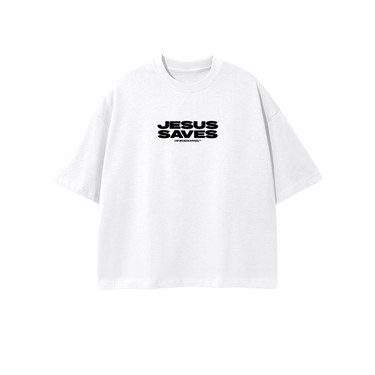 "JESUS SAVES" Combed Cotton Cropped Oversized Tee
